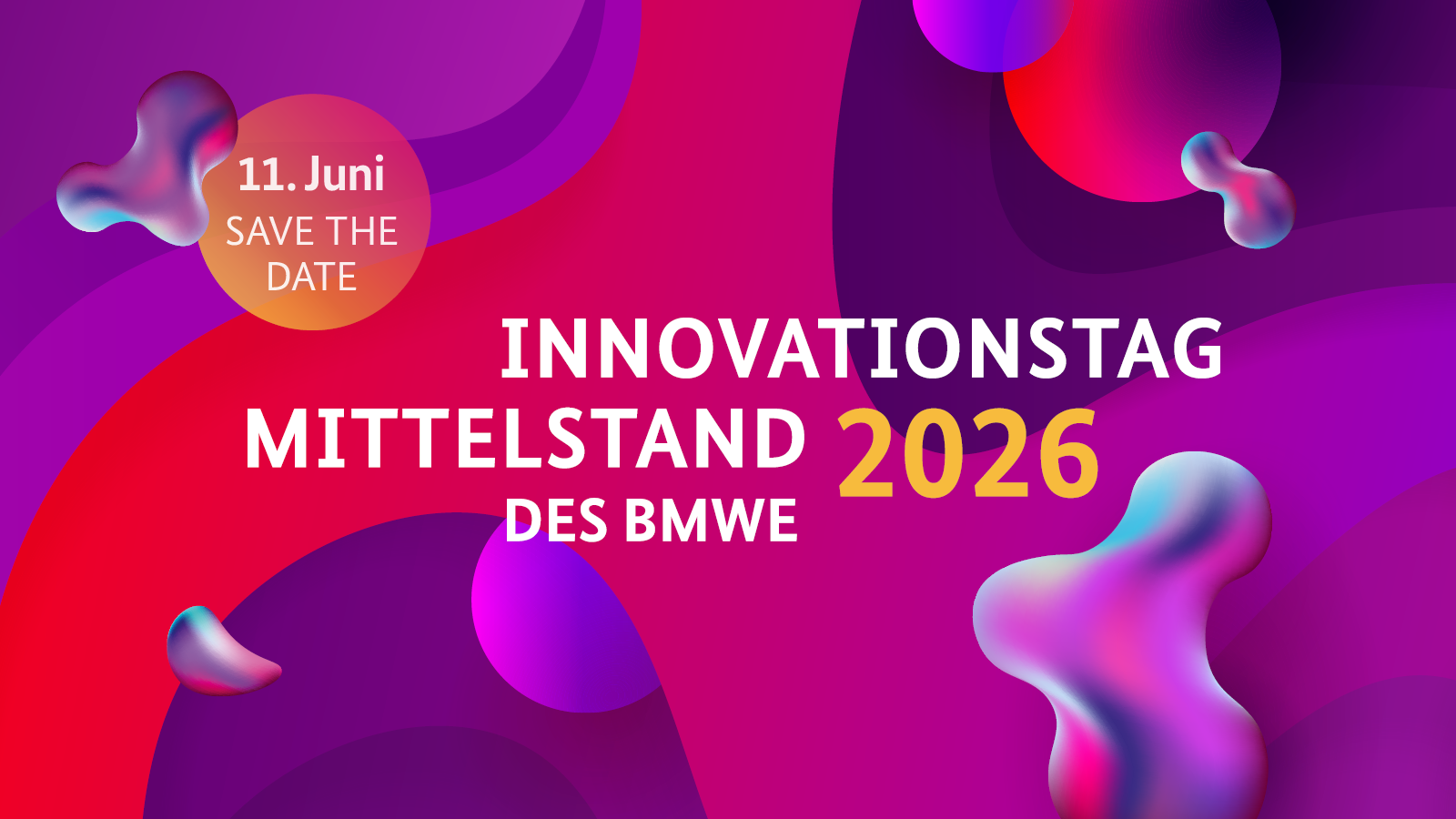Innovativ. Stark. Mittelstand. – Unter diesem Leitgedanken präsentieren am 11. Juni 2026 beim Innovationstag Mittelstand rund 300 Aussteller ihre kreativen Ideen, zukunftsweisende Projekte und neue Technologien, die mit Unterstützung der themenoffenen Innovationsförderung des Bundesministeriums für Wirtschaft und Energie (BMWE) realisiert werden konnten. Die Ausstellung zum Anfassen und Mitmachen zeigt die Innovationsfähigkeit des deutschen Mittelstands und veranschaulicht die zentrale Bedeutung kleiner und mittlerer Unternehmen für unsere Wirtschaft: Denn mit Ideenreichtum, Forschergeist und unternehmerischem Mut begegnen sie aktuellen Herausforderungen.